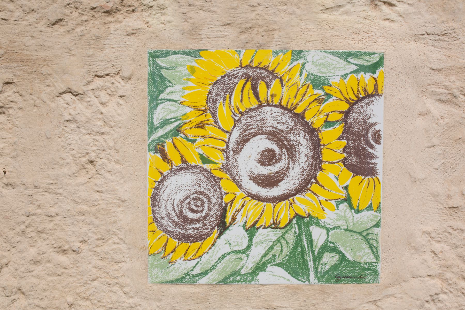 Luigi Guerricchio è stato un artista materano a cui la città di Matera è stata ed è tuttora fortemente legata. Pittore di immagini e paesaggi a lui familiari come i “Sassi”, ha saputo cogliere l’essenza del meridione in tutte le sue declinazioni: la natura, il lavoro in campagna e le feste popolari. La pittura di Guerricchio, dedicata all’uomo e alla sua terra di origine, è permeata di un intenso realismo figurativo. Appena fuori l’ingresso di questa residenza trovate una sua opera a darvi il benvenuto. Gentile dono dell’artista, sono i Girasoli dipinti su ceramica, incastonati nelle mura della nostra struttura in memoria di questo indimenticato artista.